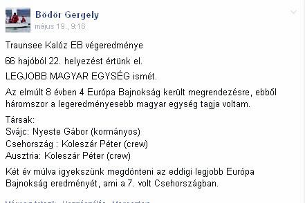 Bödör Gergely, a Deboti VSE szakmai vezetője elmondta, hogy szeretnék minden évben megrendezni a versenyt, hiszen ilyen környezetben vitorlázni „világszinten is egyedülálló”. Valóban, a páratlan természeti környezetben, a palotaszálló tövében található tavon versenyző vitorlásokat a nézők szinte testközelből figyelhetik majd, és erre alig van máshol lehetőségük.